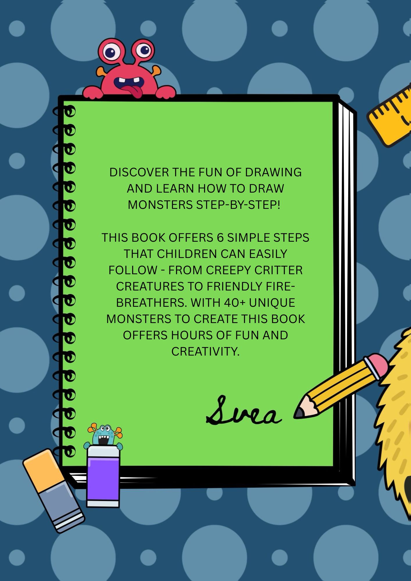 Discover the joy of drawing with Learn How to Draw Monsters Step-by-Step, the perfect guide for young artists eager to create their own creepy, cute, and quirky creatures. With 40+ unique monster designs, this book teaches kids how to draw in 6 simple, easy-to-follow steps, making it fun and achievable for beginners. From spooky critters to friendly fire-breathers, each tutorial sparks creativity and helps children build drawing confidence.