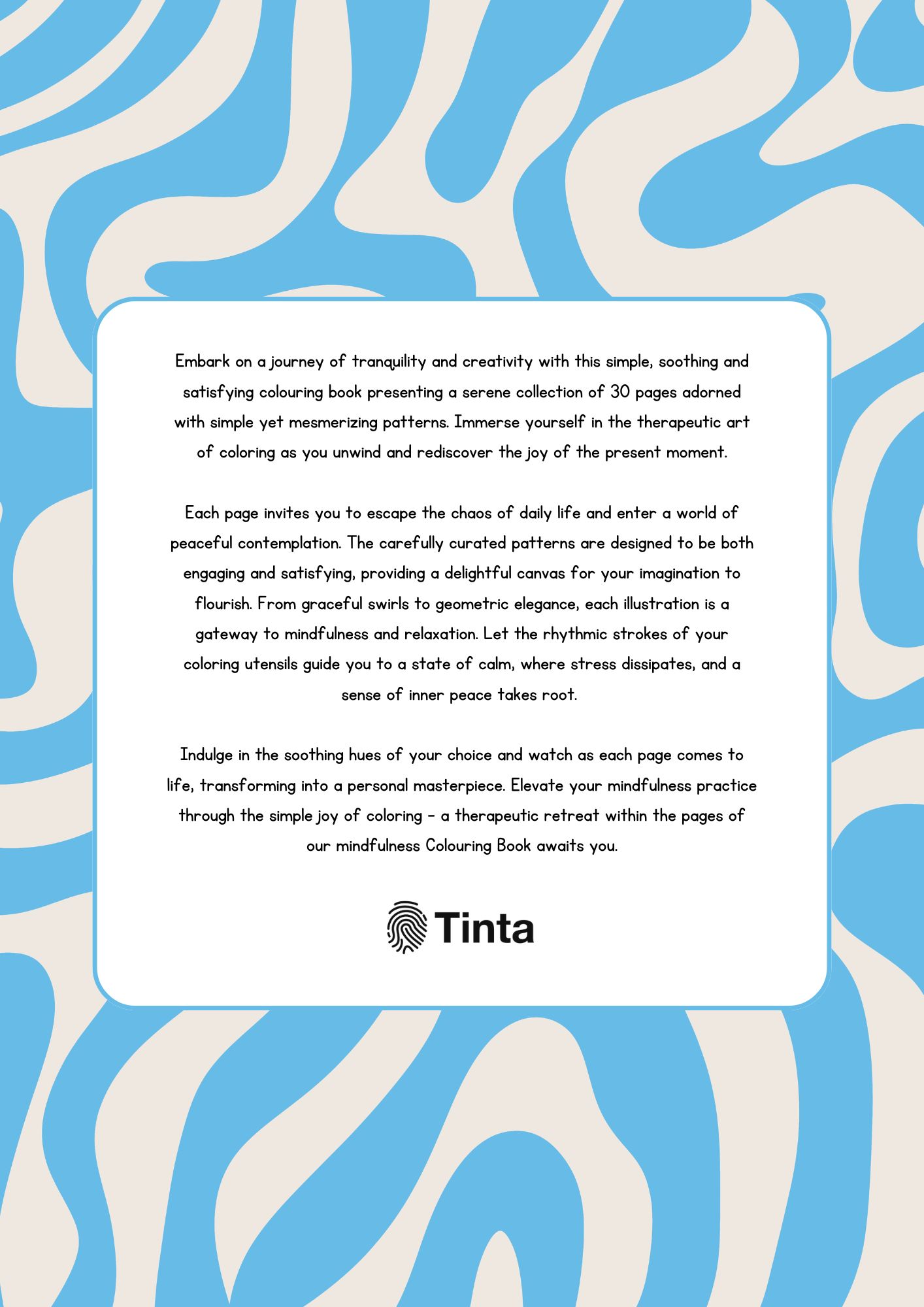 Embark on a journey of tranquility, creativity, and self-care with this beautifully designed mindfulness coloring book. Featuring 30 soothing and mesmerizing patterns, this book offers a calming escape from the hustle and bustle of everyday life. Whether you’re looking to unwind, practice mindfulness, or simply enjoy a peaceful moment, these elegant designs provide the perfect canvas for relaxation.